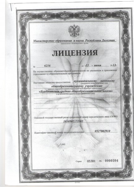 | Полное наименование образовательной организации* | Муниципальное казенное общеобразовательное учреждение "Бурдекинская средняя общеобразовательная школа" |