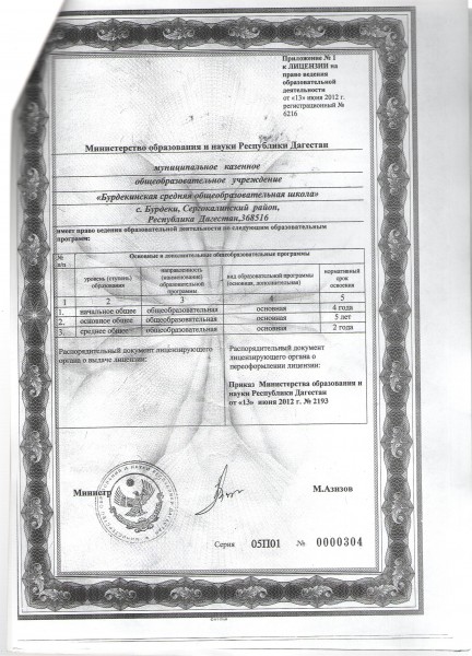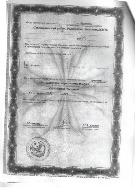 | Адрес местонахождения образовательной организации* | 368516, Республика Дагестан, Сергокалинский район, с.Бурдеки |